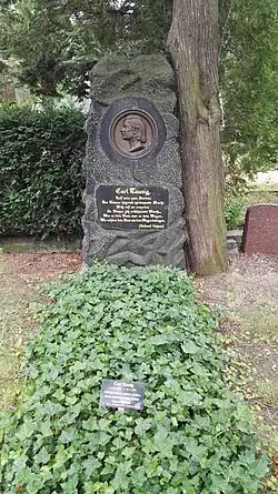 Das Grab von Carl Tausig in Berlin-Kreuzberg mit Reproduktion des Porträtreliefs