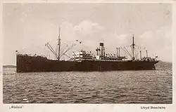 1914 durch die Sloop HMS Cormorant nahe Gibraltar aufgebracht, als Polladern auf Seiten der Entente eingesetzt, 1921 umbenannt in Sunheath, 1927 Ankauf durch den NDL, als Ilmar auch im Afrika-Dienst, 1935 an Woermann-Linie, 1939/40 Umbau zum ersten deutschen Vollfroster-Fabrikschiff Hamburg, am 3. März 1941 von britische Zerstörern bei einem Angriff gegen die deutsche Fischversorgung im Vågsfjord versenkt.[1]:S. 68 f. |