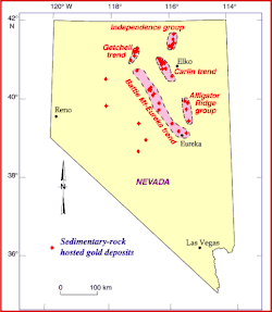 Sie beruht auf einer Kollision eines Terran mit der nordamerikanischen Platte in der Zeit des Unterkarbons (Mississippium, vor etwa 350 Mio. Jahren), die einherging mit der akadischen Orogenese. Die Kollision erzeugte hohe Krustentemperaturen und -drücke, so dass entlang der Nahtzone zahlreiche hydrothermale Quellen entstanden. Diese brachten besonders im Eozän gelöste Mineralien in Richtung der Oberfläche. Ein 5 Meilen breiter und 40 Meilen langer Gürtel durch die Stadt Carlin zählt in jüngerer Zeit zu den ergiebigsten Goldvorkommen in den USA. Die Carlin-Mine ist Namensgeber des Carlin-Typs von Goldlagerstätten, bei denen das Gold unsichtbar gelöst in Pyrit und Arsenopyrit vorkommt.