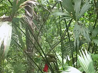 Carludovica drudei in Costa Rica, Blätter und Fruchtkolben | ||||||||||||