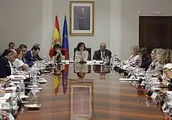 Am 5. Juni 2018 wurde bekannt gegeben, dass Premierminister Pedro Sánchez Carmen Calvo zur stellvertretenden Premierministerin und Ministerin für das Präsidialamt, die Beziehungen zu den Berufskammern und die Gleichstellung ernennen würde. Dies war das erste Mal, dass das Präsidialministerium auch das Gleichstellungsressort übernahm[15]. Calvo wurde am 7. Juni 2018 im Palast von Zarzuela vor dem König vereidigt.[14]