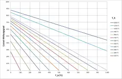 Der Wert des Carnot-Wirkungsgrades hängt ab von den (in Kelvin angegebenen) Temperaturen (heiß) und (kalt) der Reservoirs, zwischen denen die Wärmekraftmaschine arbeitet:[1]