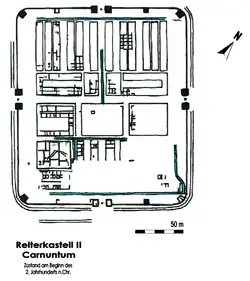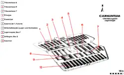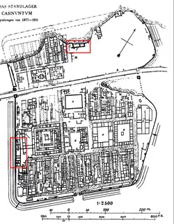 - ↑ Werner Jobst 2006, S. 86–87 und 234; Christian Gugl 2012, S. 413; Christian Gugl, Michael Doneus 2014, S. 67–72; Laszlo Borhy 2014, S. 34; August Obermayr 1967, S. 132; Christian Gugl, Mario Wallner, Wolfgang Neubauer, Michael Doneus, Klaus Löcker: Die militärischen Anlagen in Carnuntum. In: Franziska Beutler u. a. (Hrsg.): Der Adler Roms. Carnuntum und die Armee der Caesaren. Nünnerich-Asmus, Mainz 2017, ISBN 978-3-945751-86-2, S. 76–85, hier S. 82.