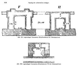 - ↑ Vegetius, Epitoma rei militaris li, 23, Werner Jobst 1983, S. 98–100; Christian Gugl, Mario Wallner, Wolfgang Neubauer, Michael Doneus, Klaus Löcker: Die militärischen Anlagen in Carnuntum. In: Franziska Beutler u. a. (Hrsg.): Der Adler Roms. Carnuntum und die Armee der Caesaren. Nünnerich-Asmus, Mainz 2017, ISBN 978-3-945751-86-2, S. 76–85, hier S. 80.