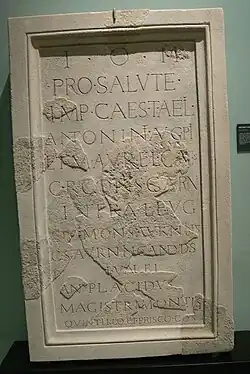 - ↑ IIII viri municipii Aelii Carnunti Übersetzung: „Die vier Bürgermeister der Stadt Carnuntum der von Hadrian das Stadtrecht verliehen wurde.“