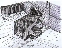 - ↑ Bauinschrift von 73 an der Principia: „Unter Kaiser Vespasian und seinen Söhnen Titus und Domitian, Statthalter C. Calpetanus Raetianus Quirinalis Festus und dem Legionspräfekten Quintus Egnatius Catus hat die Legio XV dieses Bauwerk errichtet.“