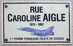 - ↑ Montauban. Un timbre pour Caroline Aigle, première femme pilote de chasse disparue en 2007. Abgerufen am 17. Juli 2021.