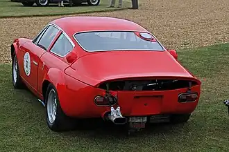 - Neu hinzu kam die Fertigung von Leichtmetallkarosserien für den Rennsportwagen Abarth Simca 2000 GT Serie II (Longnose),[39] der bei Bedarf auch mit kleineren Vierzylindermotoren mit 1300 und 1600 Kubikzentimeter Hubraum erhältlich war.