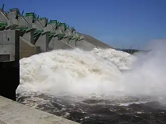 Die Hochwasserentlastung hat neun Öffnungen und kreisförmige Verschlüsse mit einer Gesamtkapazität von 30.000 m³/s Abflussvermögen. Das Krafthaus ist 470 m lang und im Hauptbauwerk integriert. 360 m davon beanspruchen die 12 Generator-Einheiten. Ein 50 m breites Zwischenstück zwischen dem Krafthaus und der Hochwasserentlastung ist vom Typ Pfeilerstaumauer.