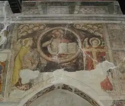 In seinem Inneren sind zwei Räume mit Freskendekorationen aus dem 14. Jahrhundert von Stefano da Ferrara erhalten: Der Salon mit den Allegorien der Virtu e dei Vizi (dt.: Tugend und Laster) mit dem Giudizio particolare (dt.: Besonderes Urteil) in der Mitte und der Wappensaal, in dem die Mesi (dt.: Monate) zwischen anderen Darstellung abgebildet sind, die vermutlich aus der Astrologie sind.[1]