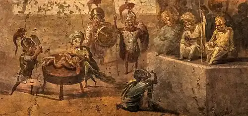 - ↑ Jürgen Hodske: Mythologische Bildthemen in den Häusern Pompejis: Die Bedeutung der zentralen Mythenbilder für die Bewohner Pompejis (= Stendaler Winckelmann-Forschungen, Bd. 6). Verlag Franz Philipp Rutzen, Ruhpolding 2007, S. 147, Tafel 8,4.