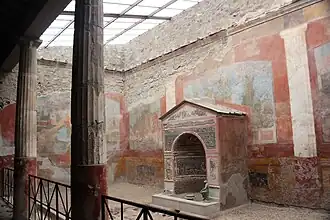 - Karl Schefold: Die Wände Pompejis. Topographisches Verzeichnis der Bildmotive. de Gruyter, Berlin 1957, S. 107–110.