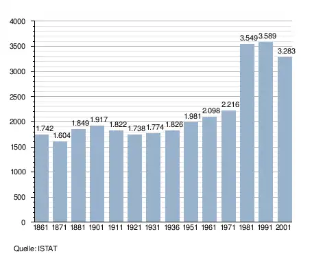 - ↑ Bilancio demografico e popolazione residente per sesso al 31 dicembre 2024. ISTAT. (Bevölkerungsstatistiken des Istituto Nazionale di Statistica, Stand 31. Dezember 2024).