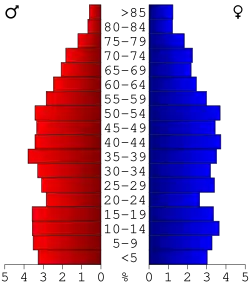 Auf das gesamte County bezogen setzte sich die Bevölkerung zusammen aus 24,5 Prozent Einwohnern unter 18 Jahren, 8,2 Prozent zwischen 18 und 24 Jahren, 27,5 Prozent zwischen 25 und 44 Jahren, 24,7 Prozent zwischen 45 und 64 Jahren und 15,1 Prozent waren 65 Jahre alt oder darüber. Das Durchschnittsalter betrug 38 Jahre. Auf 100 weibliche Personen kamen 95,6 männliche Personen. Auf 100 Frauen im Alter von 18 Jahren alt oder darüber kamen statistisch 92,6 Männer.