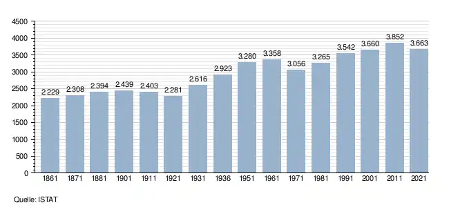 - ↑ Bilancio demografico e popolazione residente per sesso al 31 dicembre 2024. ISTAT. (Bevölkerungsstatistiken des Istituto Nazionale di Statistica, Stand 31. Dezember 2024).