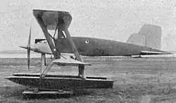 Die oberen und unteren Tragflügel in Holzbauweise mit gleicher Spannweite sind gestaffelt, zweiteilig ausgeführt und zwischen den beiden Kastenholmen mit Sperrholz beplankt und ansonsten mit Stoff bespannt. Sie sind an Strebenböcke angeschlossen, die die Verbindung zum Rumpf herstellen. Untereinander sind sie durch zwei N-Stiele großer Tiefe verbunden und in einer Ebene drahtverspannt. Zwischen den oberen N-Streben und den vorderen Schwimmeranschlüssen verläuft je ein Stirnkabel. Der im Unterflügel befindliche Kraftstoff wird durch AM-Pumpen zum Triebwerk befördert.[2] Das Leitwerk wird aus einer sperrholzbeplankten und freitragenden Holzkonstruktion mit sehr großem Seitenruder gebildet.