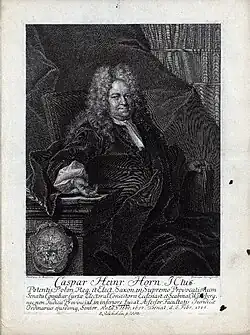 - Horn, Caspar Heinrich. In: Johann Heinrich Zedler: Grosses vollständiges Universal-Lexicon Aller Wissenschafften und Künste. Band 13, Leipzig 1735, Sp. 870 f.