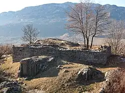 Aus karolingischer oder spätestens ottonischer Zeit finden sich wieder Spuren menschlicher Tätigkeit auf der Hügelkuppe: Die alte, teilweise verfallene byzantinische Befestigung wurde erneuert und im Westen und Norden gänzlich ersetzt. Das Mauerwerk erscheint deutlicher geschichtet, die Mauerstärke ist bedeutender und es kommen ausgedehnte Abschnitte von Opus spicatum im Mauerwerk vor. Der sogenannte „Langobardenturm“ ist dieser Phase zuzuordnen. Im Norden wurde die alte Umfassungsmauer verstärkt und ein rechteckiges, zweigeschoßiges Gebäude angestellt, von dem heute noch Wesentliches erhalten ist.