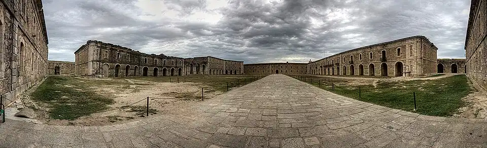 Der Militärkomplex war für eine Stammbesatzung von 4000 Soldaten und 500 Pferde ausgelegt. Zusätzlich konnten noch Offiziersfamilien und zivile Dienstleister des Heeres untergebracht werden. Um den Waffenhof herum befinden sich die Quartiere des Kommandanten, der Offiziere und der Spezialisten. Besonders beeindruckend ist der riesige Pferdestall, der als Kasematte in der östlichen Mauer angelegt ist und einen Zugang zum Festungsgraben besitzt.