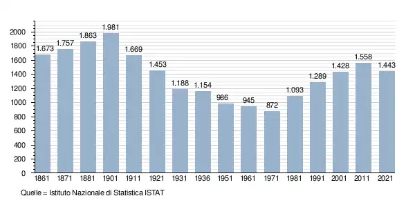 - ↑ Bilancio demografico e popolazione residente per sesso al 31 dicembre 2024. ISTAT. (Bevölkerungsstatistiken des Istituto Nazionale di Statistica, Stand 31. Dezember 2024).