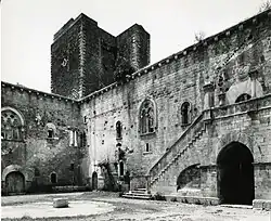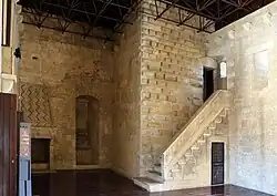 Vom Haupteingang mit seinem Spitzbogen gelangt man in den trapezförmigen Innenhof, wo sich die Treppe zum oberen Stockwerk und darüber hinaus etliche Räume im Erdgeschoss finden. Die Treppe ist mit Halbreliefen verziert, die Tiere und Jagdszenen darstellen.