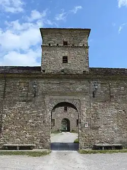 Der „Palazzo“ erhebt sich massig auf der Nordseite des Hofes. Ohne jede Verzierung ist das imposante Gebäude von einer langen Halle mit Tonnengewölbedecke durchzogen, die zum zweiten Innenhof in U-Form führt. Am gegenüberliegenden Ende dieses Hofes, der durch eine hohe Mauer und einige landwirtschaftliche Gebäude begrenzt wird, gab es ursprünglich zwei Türme mit rechteckigem Grundriss, die heute fast vollständig verschwunden sind. Einer der beiden taucht in einer Zeichnung aus dem 19. Jahrhundert auf, die in der Biblioteca Palatina in Parma aufbewahrt wird.[2] In der Mitte der Nordseite öffnet sich ein Rundbogentor, gerahmt mit doppelten Lisenen, zum Gutshof und zum Fluss Ceno hin.[9]