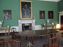 Über die Außentreppe gelangt man in die große Empfangshalle, in deren rechten Teil die Treppe aus Portlandstein in die übrigen Stockwerke führt. Linkerhand ist das Esszimmer bestehend aus zwei kleineren Räumen. Bekannt sind der Rote und Grüne Salon, zwei Prunkräume, die zum Empfang wichtiger Persönlichkeiten dienten oder zur Schreibarbeit. Die Long Gallery (lange Galerie) ist 24 Meter lang und wurde in den 1770er Jahren im pompejanischen Stil in Blau, Rot und Gold dekoriert. Zahlreiche Wandmalereien und Kupferstiche sind hier zu sehen. Die Räume wurden als Wohnzimmer genutzt und 1989 saniert.