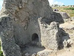 Etwa 200 m vom Altar entfernt befindet sich ein zur Hälfte in den Fels versenktes Gebäude, in welchem einige Forscher eine Art Schwitzbad sehen wollen, das auch zur zeremoniellen Reinigung genutzt werden konnte. Der Hauptraum schmiegt sich auf drei Seiten an den Fels an; die vierte Seite war ehemals mit Bruchsteinmauerwerk geschlossen. Bemerkenswert ist der aus dem Fels herausgemeißelte bogenförmige Zugang, der bereits auf die Kenntnis römischer Bauten hinweisen könnte.[6]