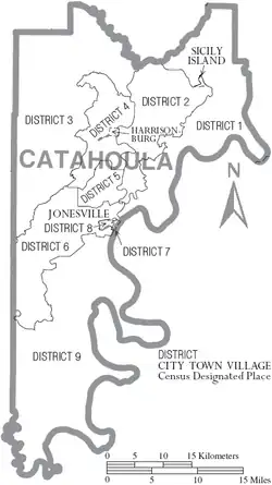 Das Catahoula Parish ist in neun durchnummerierte Distrikte eingeteilt:[7]