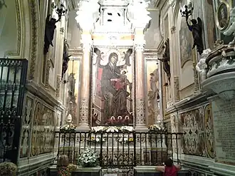 Aus der Hodegetria wurde die Madonna von Montevergine. Sie erhielt ihren Platz im rechten Kirchenschiff der alten Kirche, das auf Wunsch der Anjou in eine Kapelle umgewandelt wurde.[10][11]