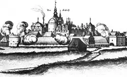 - Rekonstruktionsversuch als Zeichnung im Zustand des 17. Jahrhunderts von Wolfgang Braun