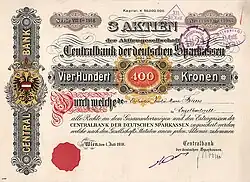 Die Centralbank wurde 1901 als zentrale Geldausgleichsstelle der deutschböhmischen Sparkassen gegründet und hatte zunächst ihren Hauptsitz in Prag. 1916, während des Ersten Weltkriegs, verlegte sie ihren Sitz nach Wien. Bei Kriegsende verlor sie durch den Zerfall der Habsburgermonarchie einen Großteil ihres Geschäfts, die böhmischen und mährischen Niederlassungen mussten 1920/21 abgetrennt werden. In der Folge versuchte das geschwächte Institut, auch im kleinen Nachkriegsösterreich als Sparkassenbank zu wirken, allerdings mit mäßigem Erfolg (es wurde später festgestellt, dass von den Gesamtgeldern der österreichischen Sparkassen nur etwa fünf Prozent bei der Centralbank veranlagt waren). Von der Aktionärsseite geriet die Centralbank zunehmend in Abhängigkeit zu einer Investorengruppe unter der Führung des steirischen Industriellen und zeitweiligen großdeutschen Abgeordneten Viktor Wutte.