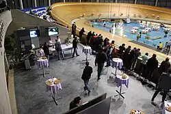 Die Radrennbahn aus Sibirischer Fichte wurde von der Firma Schürmann erbaut. Sie hat eine Länge von 200 m und maximale Neigung von 46.7°. Der Innenraum der Bahn wird für andere Sportarten wie Kunstturnen, Trampolin und Leichtathletik genutzt.[1]