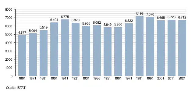 - ↑ Bilancio demografico e popolazione residente per sesso al 31 dicembre 2024. ISTAT. (Bevölkerungsstatistiken des Istituto Nazionale di Statistica, Stand 31. Dezember 2024).