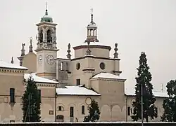 Ab 1562 wurde die Kirche im Stile der Spätrenaissance umgebaut. Die Fassade weist Elemente der Renaissance und des Barock auf. Es sind Zeichnungen stammen aus dem Jahre 1570. Es ist überliefert, dass die Kirche bei der Heiligsprechung von Karl Borromäus 1610 noch nicht vollendet war.