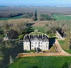 Zum zentralen, zweigeschossigen Baukörper gehören eine Reihe von symmetrisch darum angelegten Nebengebäuden wie Stallungen, eine Kapelle und eine Mühle sowie ein 24 ha großer Park. Das Gebäude und seine Nebengebäude zeichnen sich durch Symmetrie und Harmonie aus und sind im typischen Stil ihrer Zeit unmittelbar vor der Französischen Revolution angelegt.[1] Laut der Direction Régionale des Affaires Culturelles (DRAC) gilt das Schloss als das schönste im Département.[2] Zur Anlage gehören die 3 km lange Allee, die Terrassen und das monumentale Tor, die in ihrer Gesamtheit dem Schloss und den beiden 100 Meter langen Wirtschaftsgebäuden eine „große Erhabenheit verleihen“.[3]