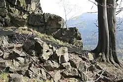 - Ein guter Ausgangspunkte für einen Besuch des Berges ist auch die nahe Passhöhe Křížový Buk. Von dort ist der Gipfel über o. g. grün markierten Wanderweg in ca. einer halben Stunde erreichbar