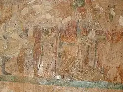 Das etwas tiefer liegende und dreiflügelig abgewinkelte Gebäude 3 umfasst insgesamt 16 Räume; an der Rückwand des Raumes 10 befinden sich eine (Altar-)Platte und schlecht erhaltene Malereien, die als Darstellung einer Prozession gedeutet wurden.