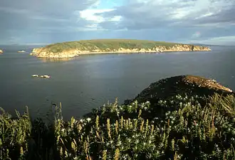 Die Vegetation entspricht der einer Tundra. Daneben gibt es lokal Strand- und Sumpfpflanzengemeinschaften. Auf der Insel brüten etwa 3000 Seevögel, vor allem der Hornlund.[4] Füchse und Seehunde besuchen zumindest zeitweise die Insel.