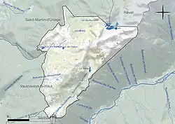 Im Gemeindegebiet gibt es nur wenige Fließgewässer die das ganze Jahr Wasser führen. Hierzu gehören der Quellbereich des Vernon[7] und der Ruisseau de Salinière[8] sowie der Ruisseau de Moirin[9]. Alle drei Bäche münden in die Romanche.