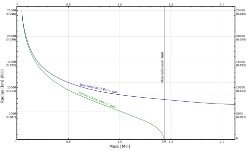 Daraus ergibt sich direkt die erwähnte kritische Masse von 1,457 Sonnenmassen. Ein Beispiel für einen solchen Stern ist Sirius B.