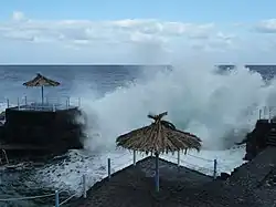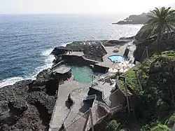 Das Schwimmbecken Charco Azul wird gegen die Brandung des Atlantiks durch eine Mauer geschützt, über die das Becken einen direkten Meerwasserzulauf hat. Das Wasser im Becken ist daher meist ruhig. Zusätzlich gibt es ein Kinderschwimmbecken, das über Pumpen mit Atlantikwasser versorgt wird.[3] Schwere Stürme und Unwetter 2008 und 2009 hatten dazu geführt, dass das Meeresschwimmbecken schwer beschädigt wurde; es wurde in den folgenden Jahren wieder instand gesetzt.[4] Unweit des abgemauerten Beckens kann auch in ursprünglich belassenen Naturbecken gebadet oder dort geangelt werden. Zur Anlage gehört neben Umkleidekabinen ein Restaurant mit Bar und Veranda. Oberhalb der Anlage sind Besucherparkplätze sowie eine Haltestelle der dreimal täglich verkehrenden Buslinie 104 (nicht am Wochenende) eingerichtet.[5][3]
