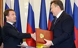 - ↑ Ex-Ukrainian President Yanukovych defendant in another criminal case for signing 'Kharkiv agreements'. Interfax-America, 28. Januar 2021.