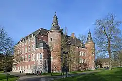 - Das im 17. Jahrhundert auf Festungsruinen aus dem 14. Jahrhundert errichtete Schloss von Monceau-sur-Sambre, inmitten eines englischen Gartens.
