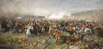 General Ginkel, der wilhemitische Befehlshaber, bemerkte im Verlauf der Schlacht, dass seine Armee im Begriff war, die Schlacht zu verlieren. Sein Zentrum war komplett zusammengebrochen und sein linker Flügel hatte massive Verluste erlitten, ohne dass noch eine Möglichkeit bestand, die Zielvorgaben zu erreichen. Ginkels rechter Flügel sollte die irische linke Flanke angreifen, was aber nicht ohne Gefahr möglich war. Ginkel war mit der Situation offensichtlich überfordert und wusste nicht, was er tun sollte außer flüchten. Tatsächlich gab es einige Anzeichen, die nahelegen, dass bereits Vorbereitungen zur Flucht getroffen worden waren. Auf Seiten der Jakobiten bemerkte General St. Ruth die Verwirrung des Gegners und wähnte sich siegessicher, sodass er vor Freude ausrief: „The day is ours, my children!“ („Der Tag ist unser, meine Kinder!“)[7]