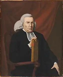 - ↑ Chauncy organized American clergy and corresponded with English dissenting clergy to protest and prevent the encroachment of the Church of England in its colonies. Although his effort to unify the clergy ultimately failed, Chauncy received an honorary Doctor of Divinity degree from the University of Edinburgh. He was a charter member of the American Academy of Arts and Sciences (1780)[1] and was recognized by the Massachusetts Historical Society (when his portrait was hung there) as "eminent for his talents, learning, and lover of liberty, civil and religious." He was, in short, honored as one of the leading intellects of 18th-century America. He was also an unapologetic elitist. Biographer Lippy wrote that Chauncy believed "the laymen should simply follow the lead of the clergy who were, after all, the theological professionals.