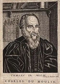 - ↑ Das Folgende v. a. nach Wim Decock: Charles Dumoulin (1500–1566). In: Olivier Descamps, Rafael Domingo (Hrsg.): Great Christian Jurists in French History. Cambridge University Press, Cambridge 2019, S. 97–116.