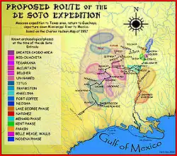 3. Zur Kartierung der De Soto-Route (De Soto Trail), vgl. z. B. npshistory.com: Route of the Hernando De Soto Expedition, 1539-1543 & De Soto Trail (National Historic Trail Study. Final Report)
