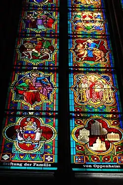 - 1880 stiftete sie im Angedenken an ihren verstorbenen Mann ein Fenster für den Kölner Dom, das heute im „Welter-Zyklus“ als Abrahamfenster bezeichnet wird. Nach dem Zweiten Weltkrieg wurde es mit einem verkürzten Baldachin an seinen ursprünglichen Platz im westlichen Obergaden des nördlichen Querhauses wieder eingesetzt. Wie viele andere Fenster des Kölner Doms ist es ein Werk des Kölner Glasmalers Michael Welter (1808–1892).[3]