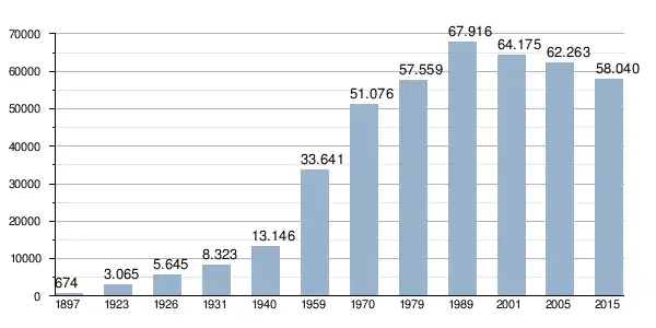 Quellen: 1897–1940: [6] 1959: [7] 1970: [8] 1979: [9] 1989–2015: [10]